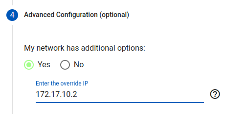 In the next step, we introduce the ‘Dummy IP’ address, as well as the ‘Override IP’ address of the actual panel. In this example, we pick the ‘Dummy IP’ address of 123.123.123.123 , and we intend to reach the HMI panel on the local LAN at the IP address 172. 17.10.2 (note: This should match the %IP1% address defined in the C-more panel configuration). We will use the default TCP port 11102 as in the below images.