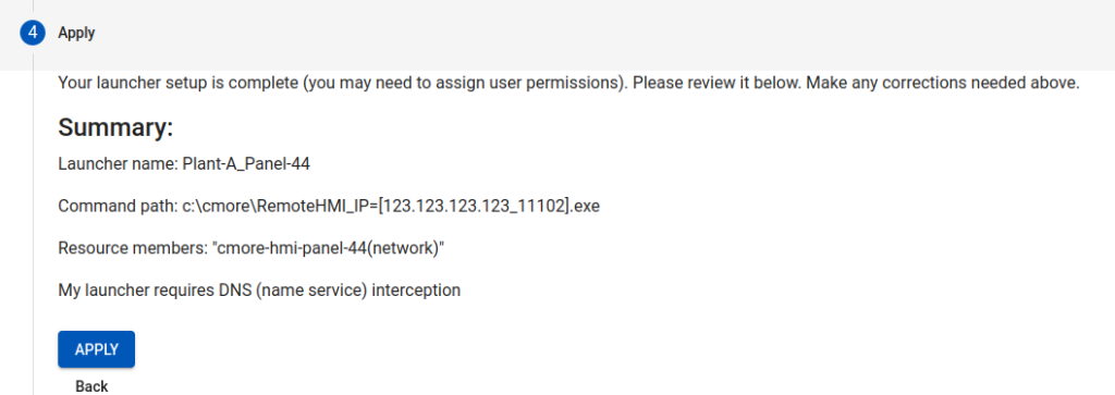 Here we choose to name the launcher after the Panel and Plant location example we’ve used in this write up. This will be the name associated with the Launcher icon on the desktop.