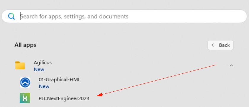 After running the Agilicus “Refresh” desktop shortcut, any user workstation with Agilicus Desktop Integration will have a visible PLCnext Engineer launcher created in the Agilicus start menu.