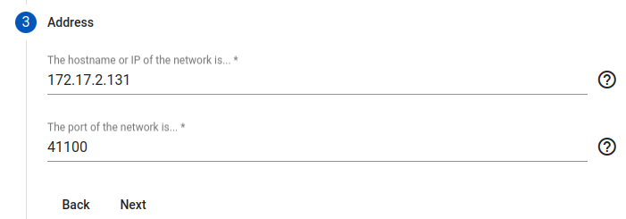 Eg: address of 172.17.2.131 , TCP port of 41100