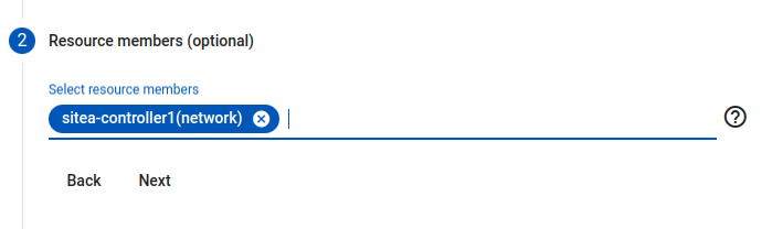 In Step 2, we will assign all the resource members previously configured so that the Engineer software can access them. In this case, the previously configured sitea-controller1 network is assigned.