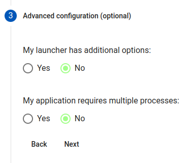 If this step is skipped, authorization to this newly created Launcher resource can be assigned via the Access -> Resource Permissions admin menu