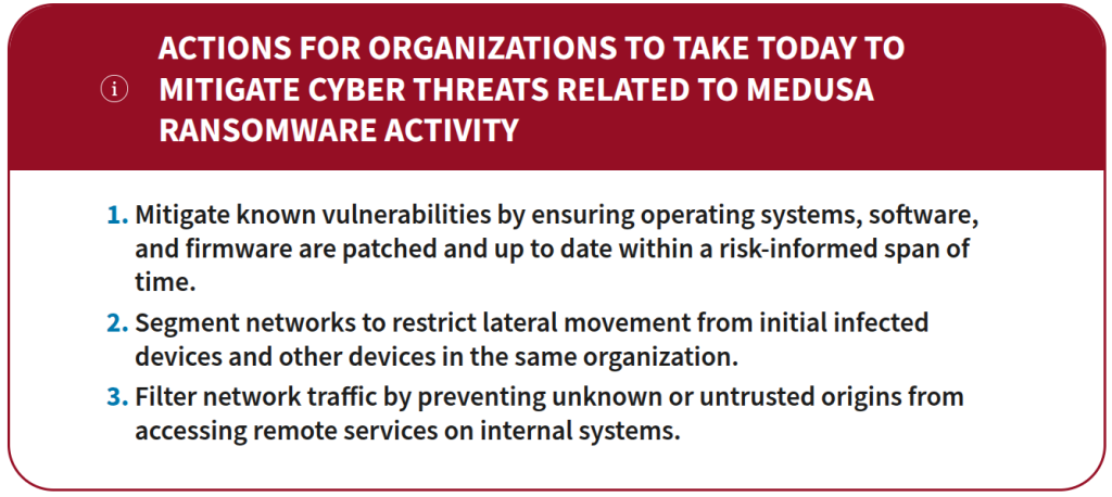 Medusa gets in via some unpatched CVE, often your firewall or VPN, or sometimes your monitoring tools (e.g. SolarWinds).