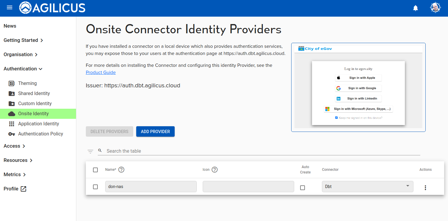 Read more: Authentication Issuer – Onsite IdentityAn Authentication Issuer holds and confirms Identity. Configure your own custom ones here.