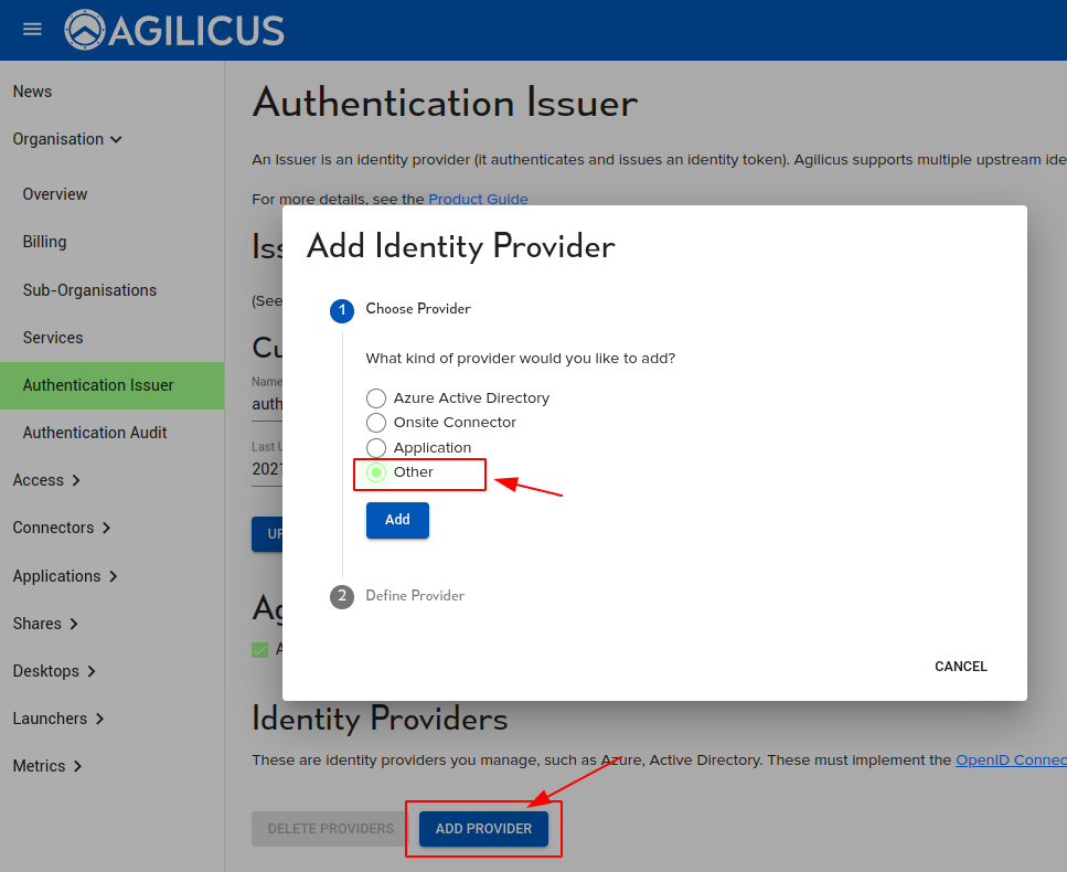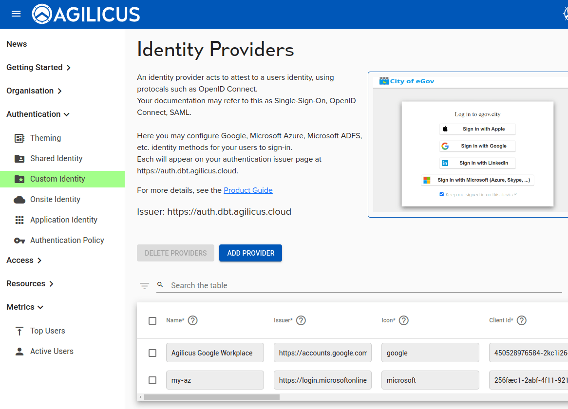 Read more: Authentication Issuer – Custom IdentityAn Authentication Issuer holds and confirms Identity. Configure your own custom ones here.