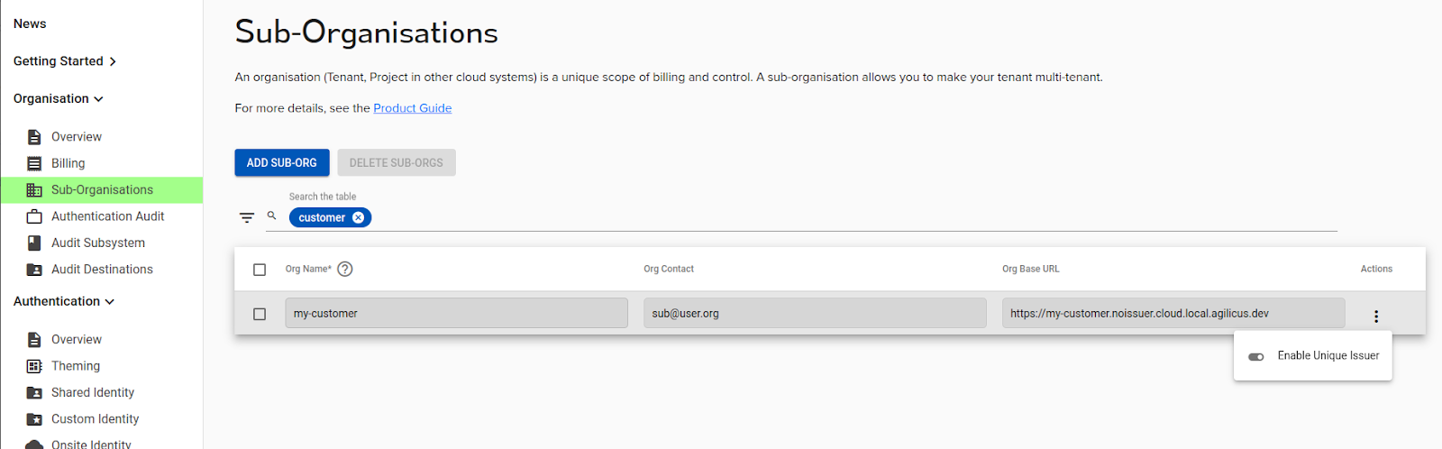 Read more: Sub Organisation IssuerYou can now create an issuer for a suborganisation from a parent organisation. Doing so will bring up a new admin/profile endpoint for the suborganisation, at the suborganisation’s subdomain. E.g. admin.suborg.myorg.cloud.