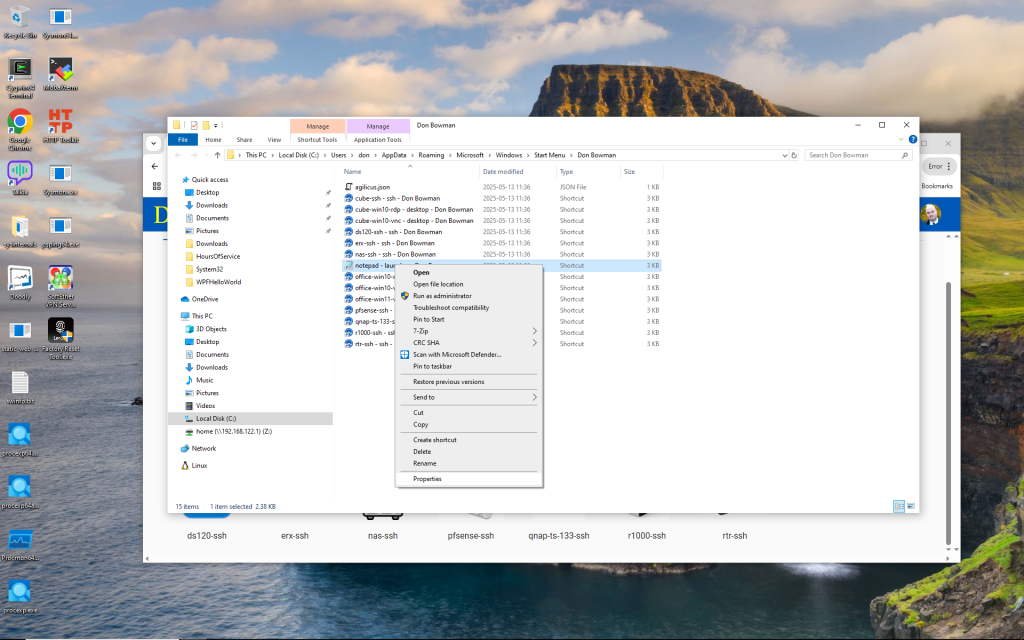 - run cd “DIR” where dir is the ‘Start In” field. Use double-quotes.