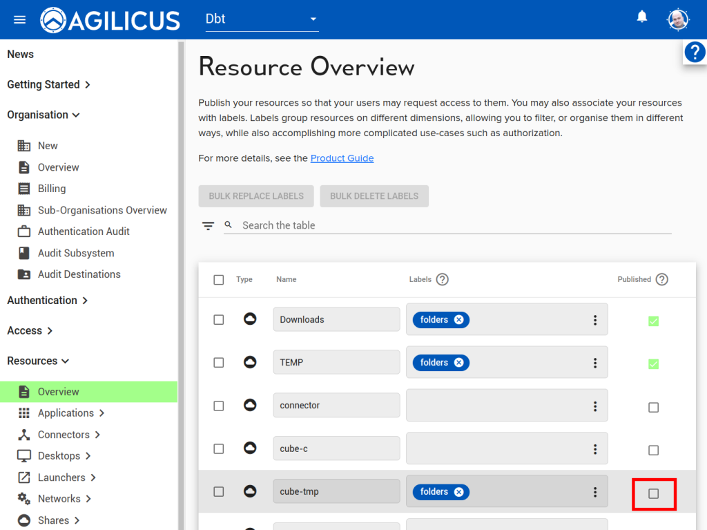 An additional column ‘Published’ may be used to hide the resource from the label folder in Profile. This may be used if the label is solely for a policy usage.