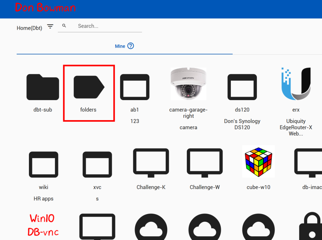 In the example image above (‘folders’ is applied to 3 Shares), we can see in profile a new icon, ‘folders’. Inside this folder are 2 items (since we did not select ‘Publish’ for cube-tmp).