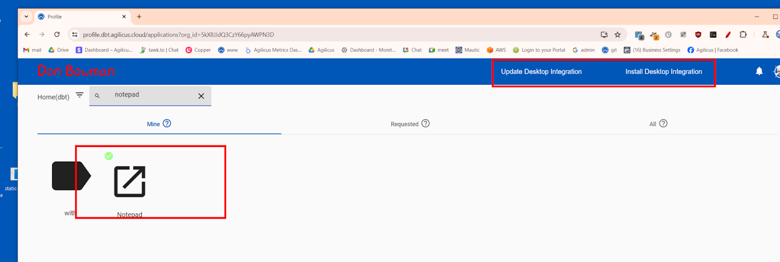 At this stage we can test. The user will need to install the Launcher on their desktop, via https://profile.__MYDOMAIN__. If installed, they can either use the desktop integration, or, run refresh and observe the new icon, launch it.