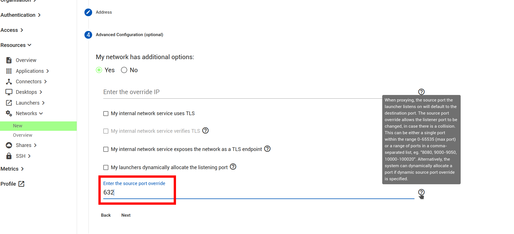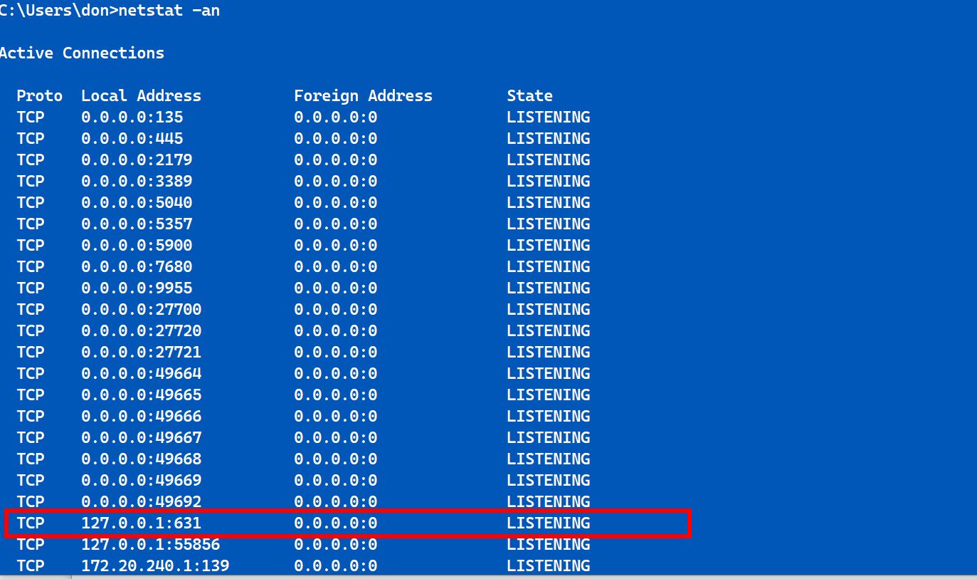 The method we are using above to tunnel the printer works best with a single printer. In order to use multiple printers at the same time, when creating the network, use a source-port override such that each printer is unique.