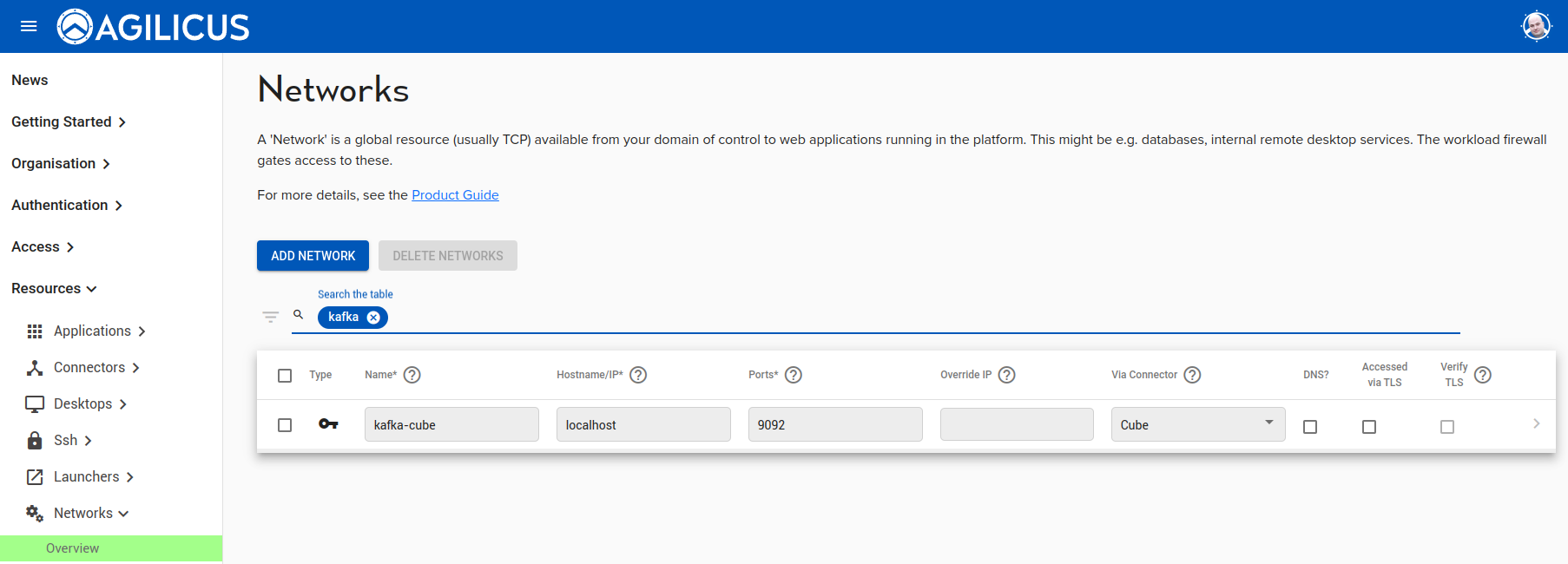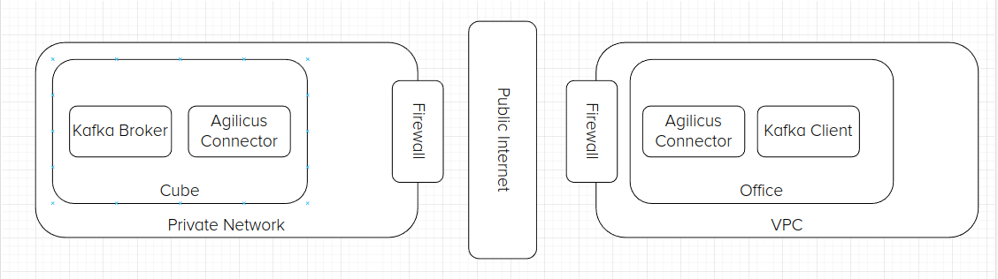 For this example, we will use two hosts. Cube exists inside a private network with a restrictive firewall. Only HTTPS/443 is allowed, and only in the outbound direction. On this host runs a Kafka broker on port 9092.