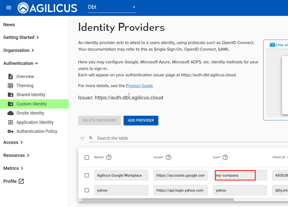 Once done, set the ‘Icon’ field in your identity provider to match the name.