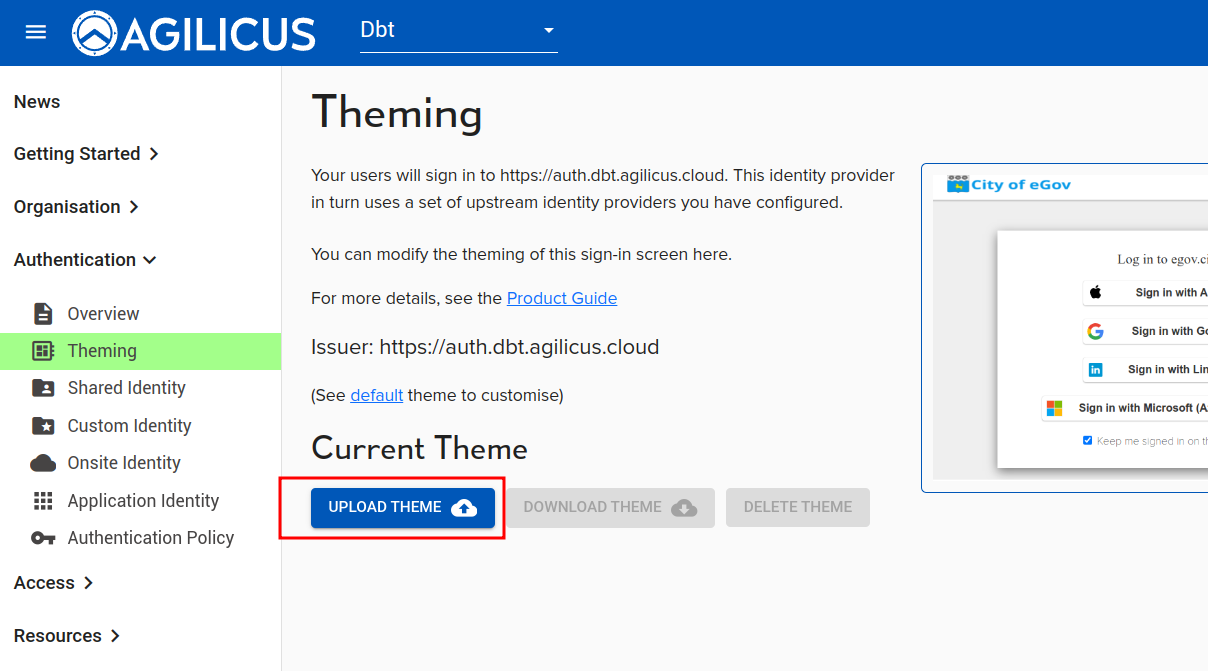 Setting up your theme on Agilicus AnyX is quite simple. The basic steps are: