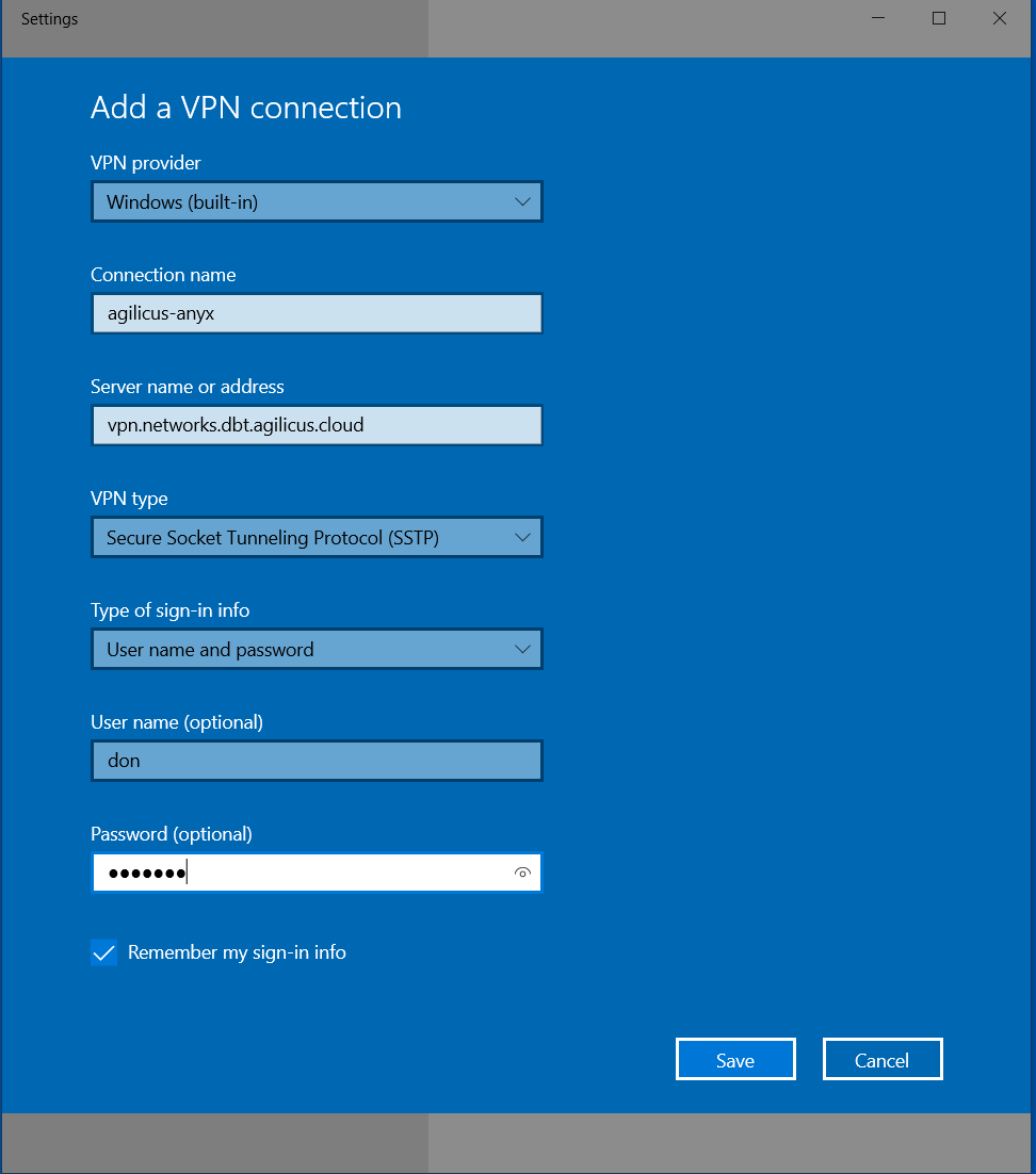 In this example I show a method of running a traditional VPN on top of Agilicus AnyX. Its important to note that this dramatically reduces the security: there is no Zero Trust, there is no single-sign-on with multi-factor, there is no fine-grained authorisation and audit: its simply a tunnel. Be very careful in setting up these instructions, you are relying solely on the strength of the VPN passwords, on the strength of the VPN encryption, on the security of the software implementing the VPN, achieving UDP via SSTP VPN.
