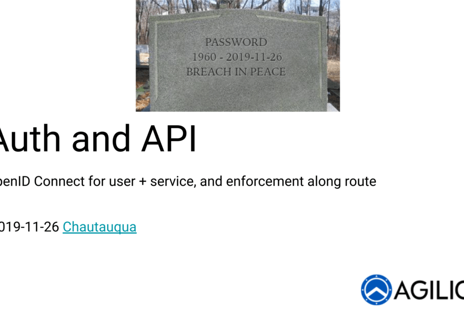 Agilicus hosted a meetup (Chautauqua) on the topic of OpenID Connect for Authentication and Authorisation of users and API’s. We discussed the merits and drivers for OpenID Connect, as well as an implementation using Istio and Open Policy Agent (OPA) driven from OpenAPI specification.