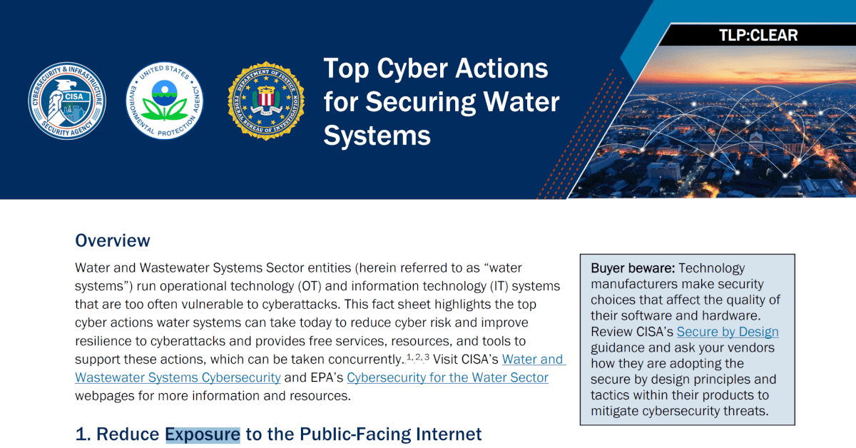 Spoiler, the list is below. You should still read the Fact Sheet “Top Cyber Actions for Securing Water Systems”