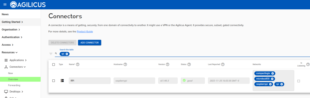 - If not already done. Deploy the Agilicus Connector on your Raspberry Pi or other IPC