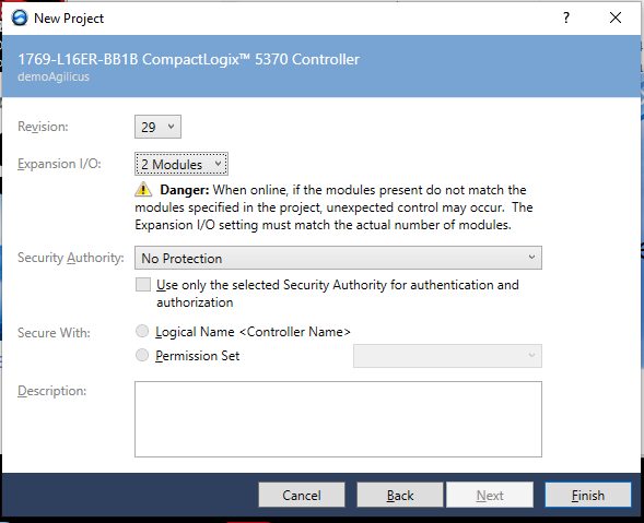 Sample Project, CompactLogix 1769-LER, Agilicus Setup