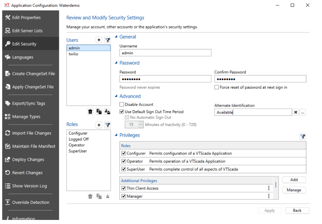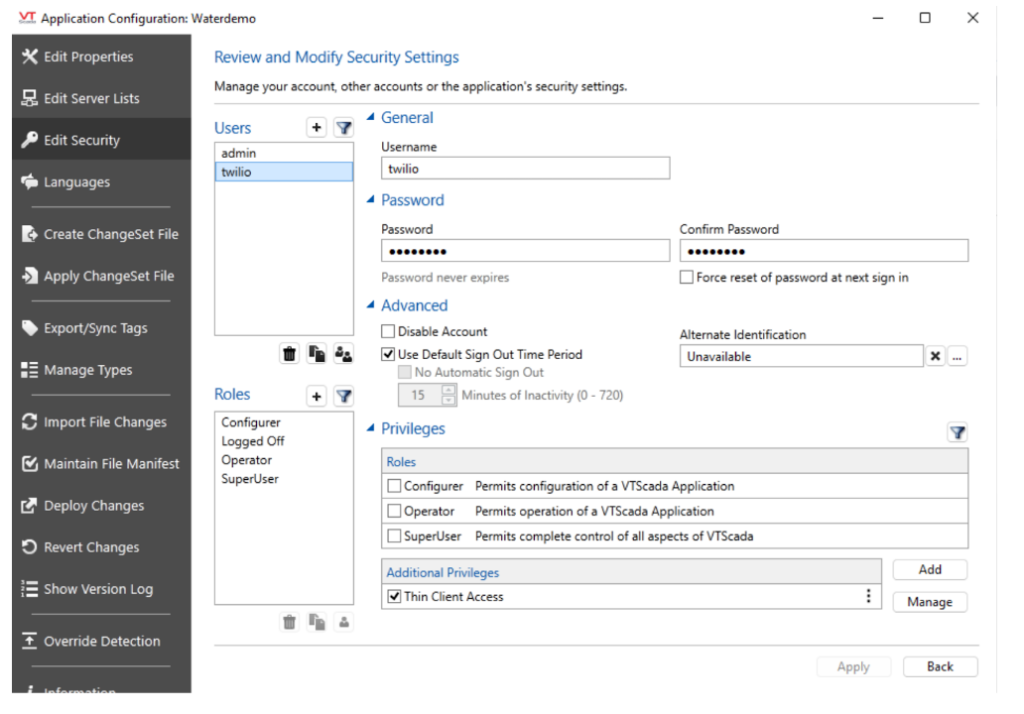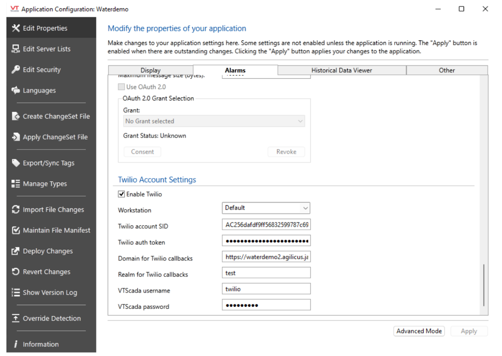 The following requirements need to be satisfied in the VTScada configuration to enable Twilio: