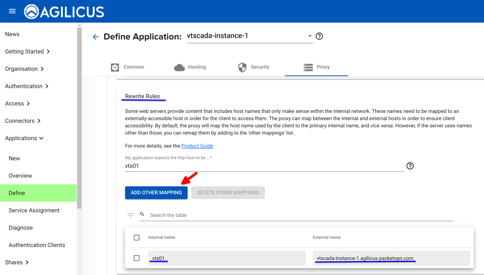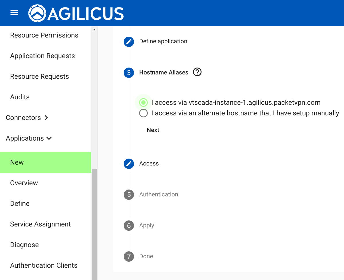 Click “Apply” to submit the new address. This will allow VTScada Anywhere Client to present a list of valid hostnames where the Anywhere Client is allowed to connect. Since the FQDN is the one we configured through the Agilicus platform, the VTScada Anywhere Client will be permitted to browse via the newly created service.