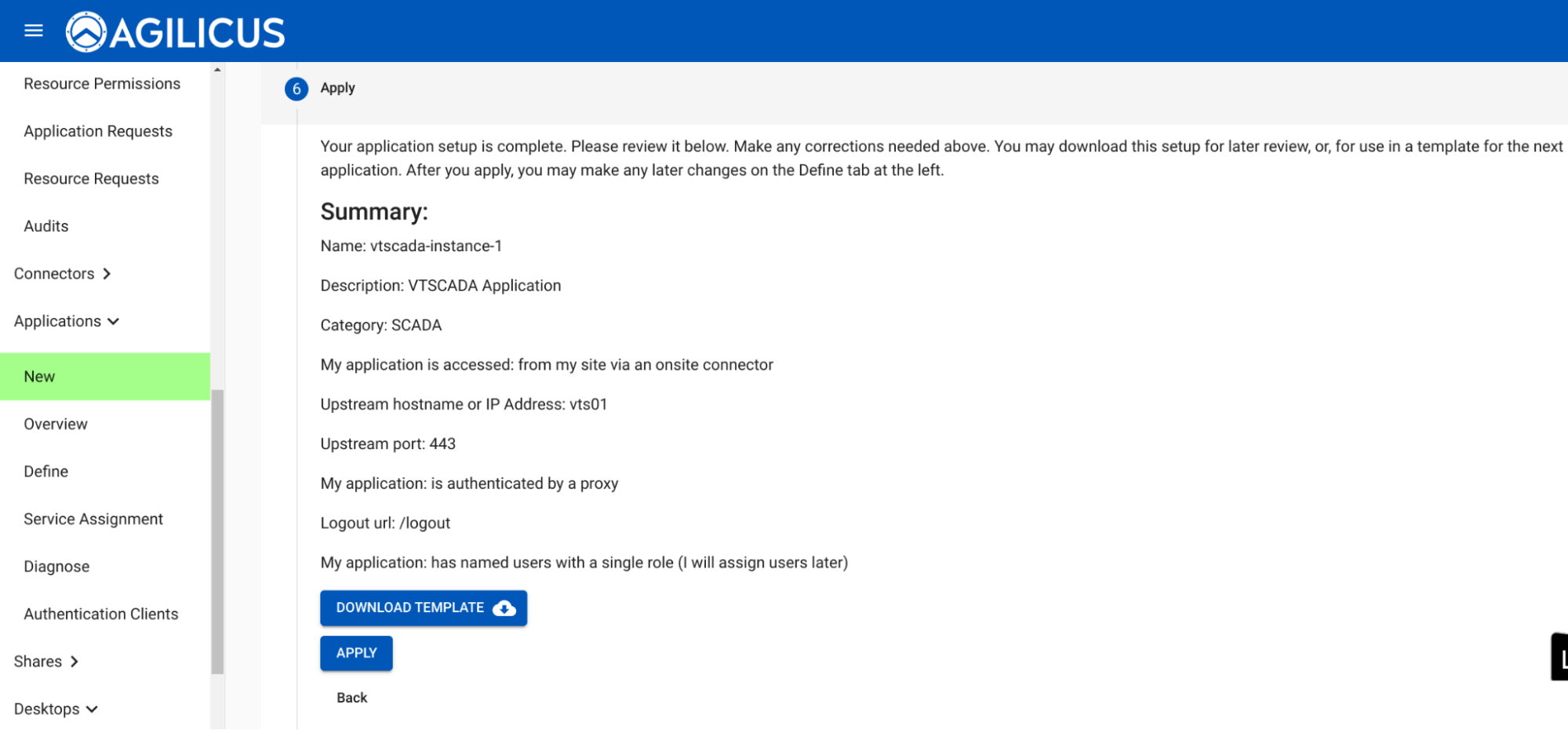 We have now completed setting up your VTScada resource within the Agilicus platform.  At this point you would want to create the appropriate Role Based Access Control permissions per the steps below: