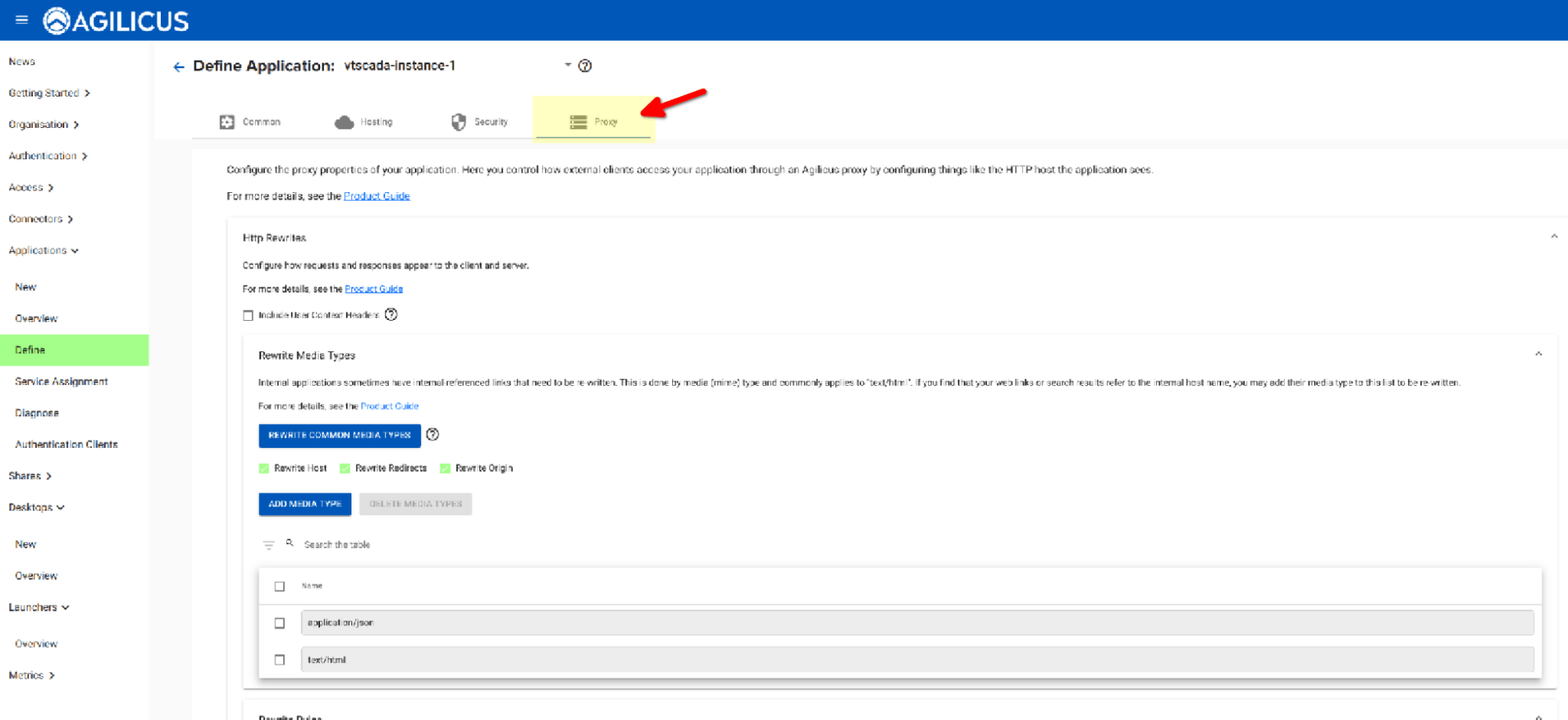 After clicking on “Configure Application”, select the Proxy section
