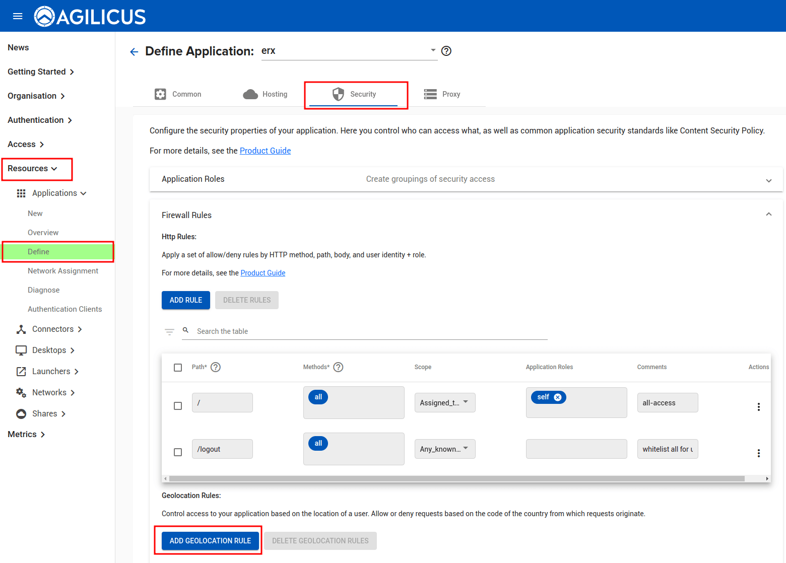 It i possible to allow/deny access to individual resources based on the country their inbound IP is coming from.
