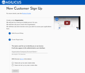Choose a sub-domain and an Agilicus domain, then click “Create”.