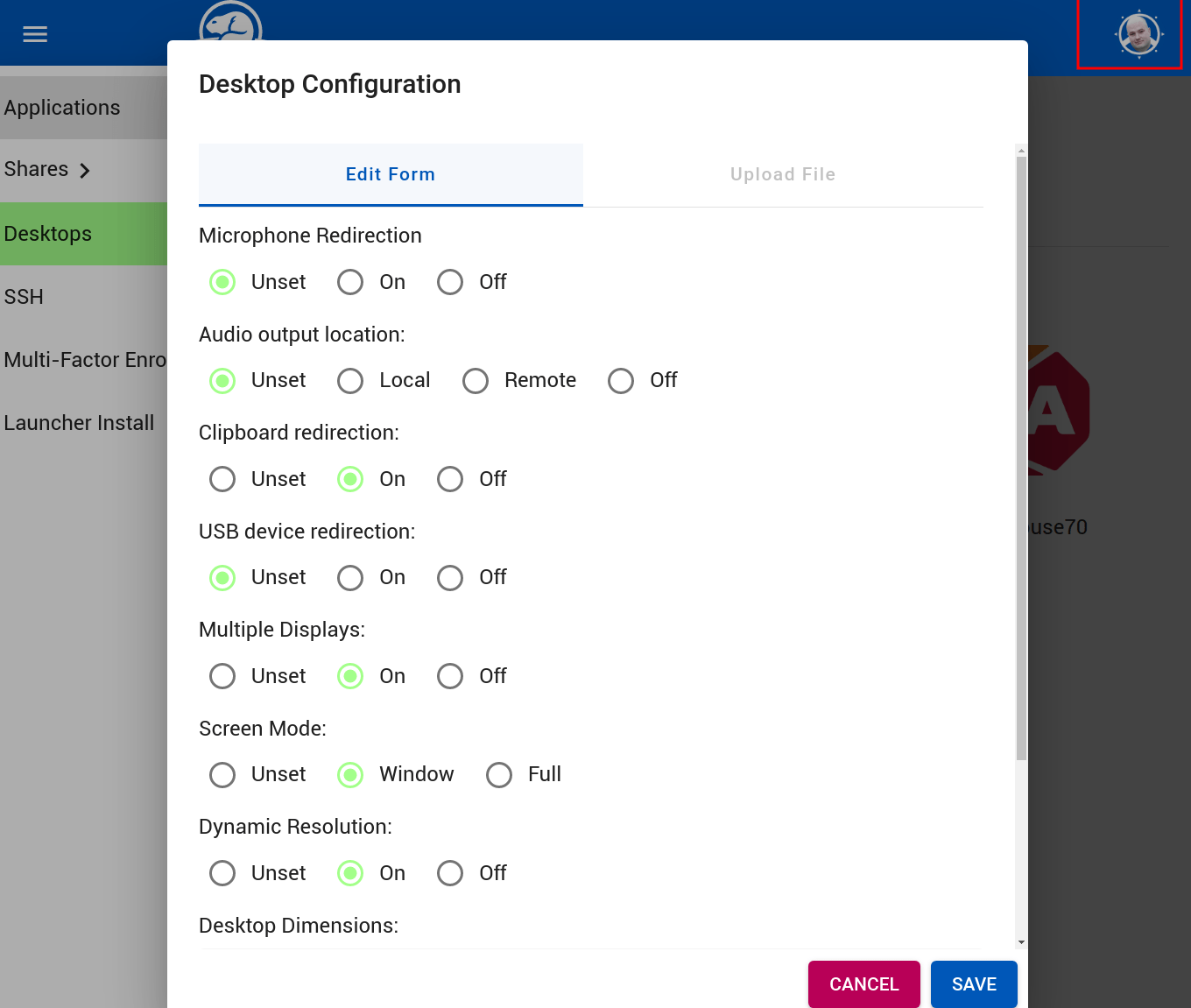 Once you have completed these steps, as an Administrator you will be offered the opportunity to download an RDP file. This will open in your native Remote Desktop application (on all platforms). The Desktop will become available approximately 1-2 minutes after you apply the config. (This is to test the configuration)