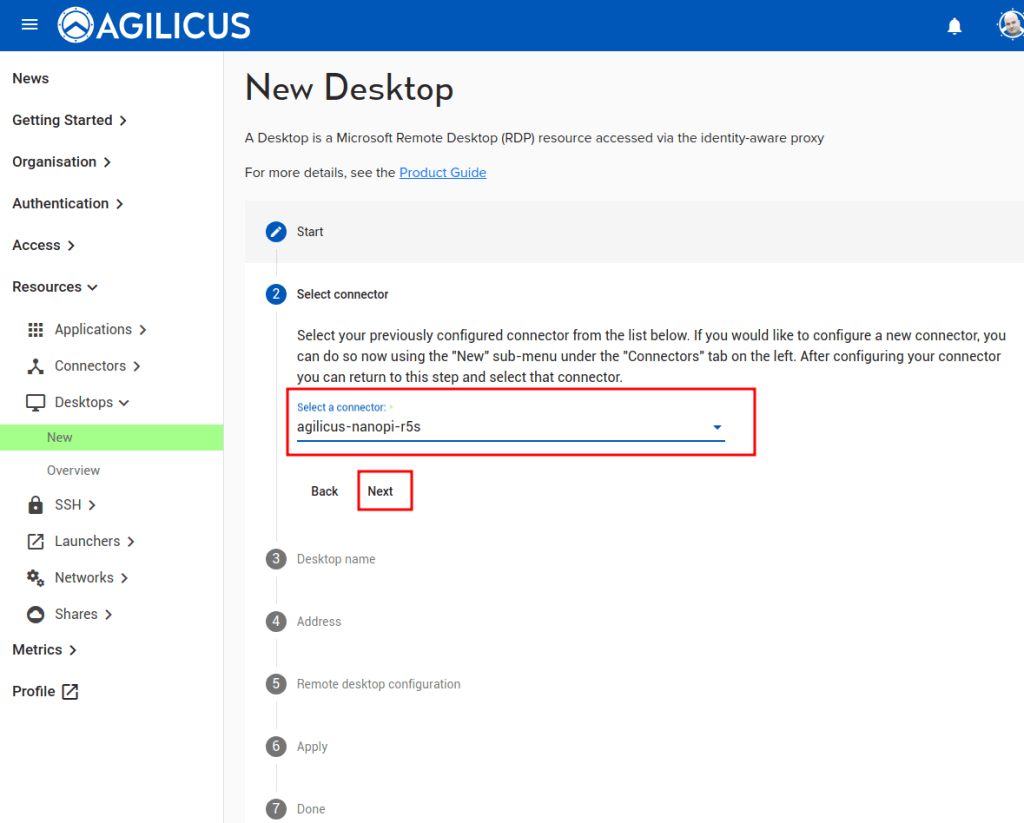Note: you can use a site-to-site VPN via IPSEC, or use the onsite Agilicus Connector for each pool of servers. These instructions assume the latter.