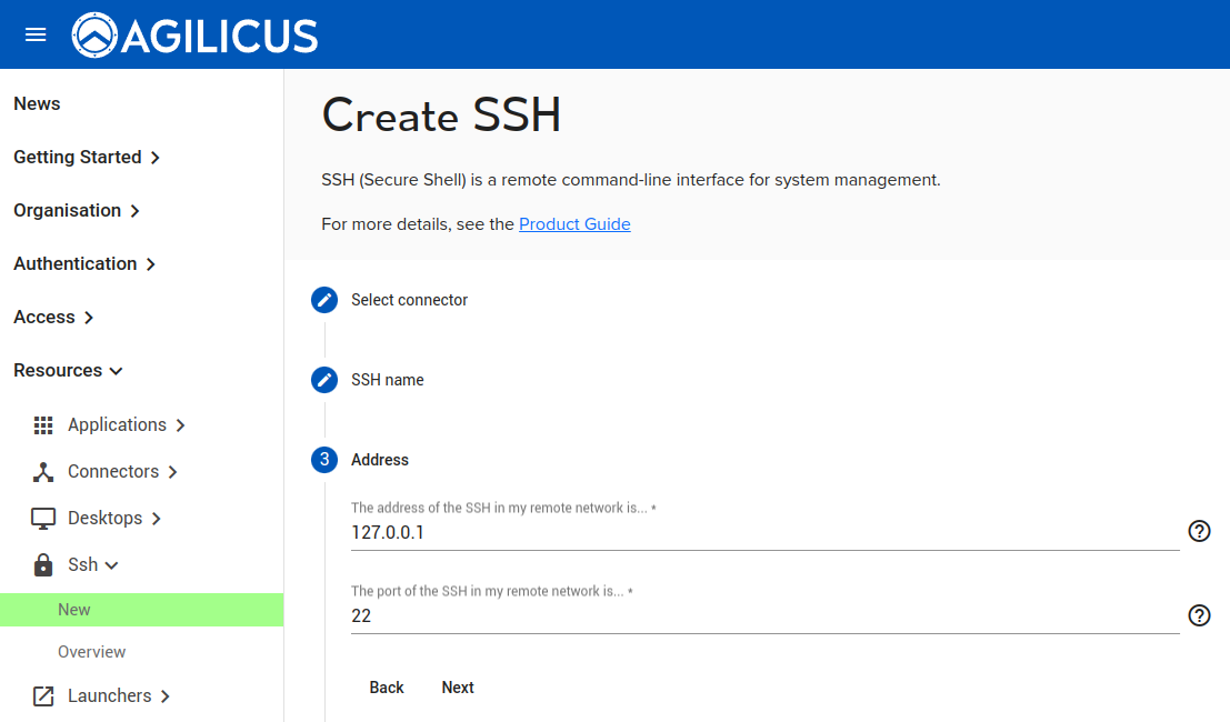 In this guide we will setup the Agilicus Zero-Trust Network Access to directly access arbitrary SSH servers. The users will see them as being directly Internet connected. The users will have zero configuration (after the initial setup). Users can be individually authorised on a per SSH server basis. Additionally, users can be federated for identity by any upstream identity provider, allowing an external vendor to be identified by their own corporate Azure Active Directory, an independent contractor via their Google login.