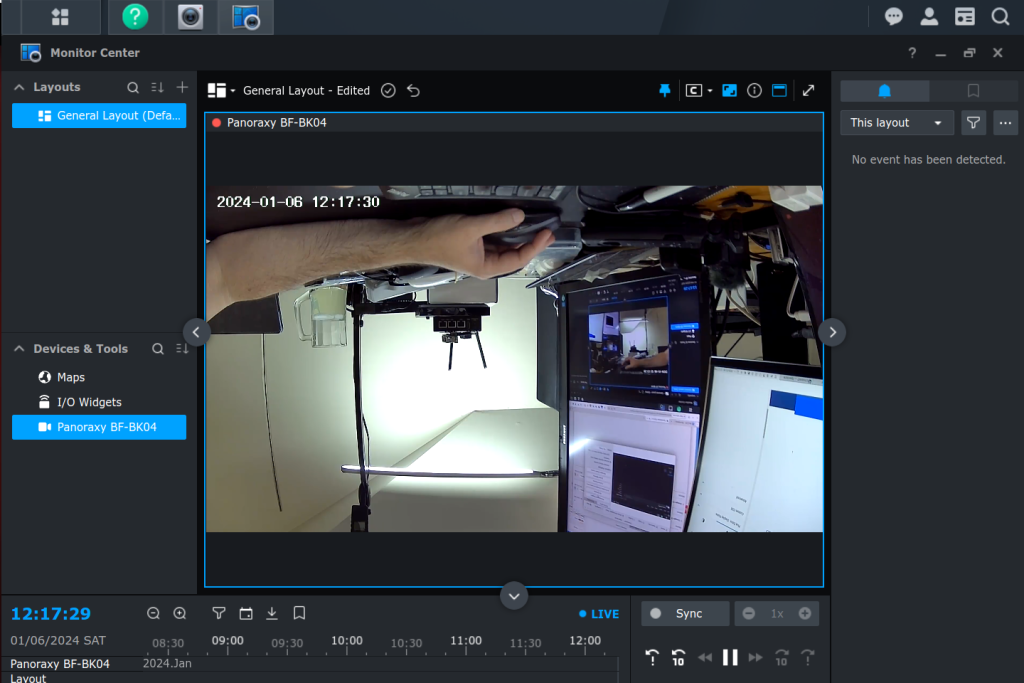 Once this is done, we should have local access to our cameras. You can create monitoring overlays, use the PTZ features, etc.