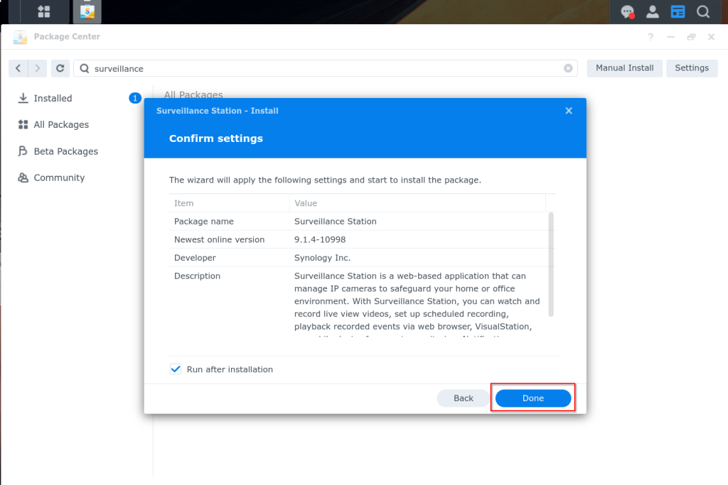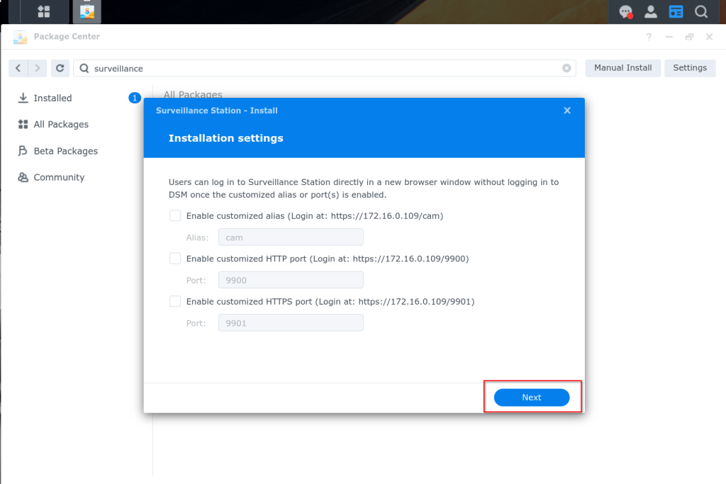 We will follow the standard instructions for Synology Surveillance station: